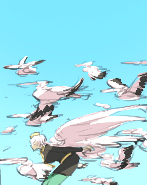 擬人化イラスト本のための習作・大ラフ。画作りに初めてしっかり向き合っている…かもしれない。