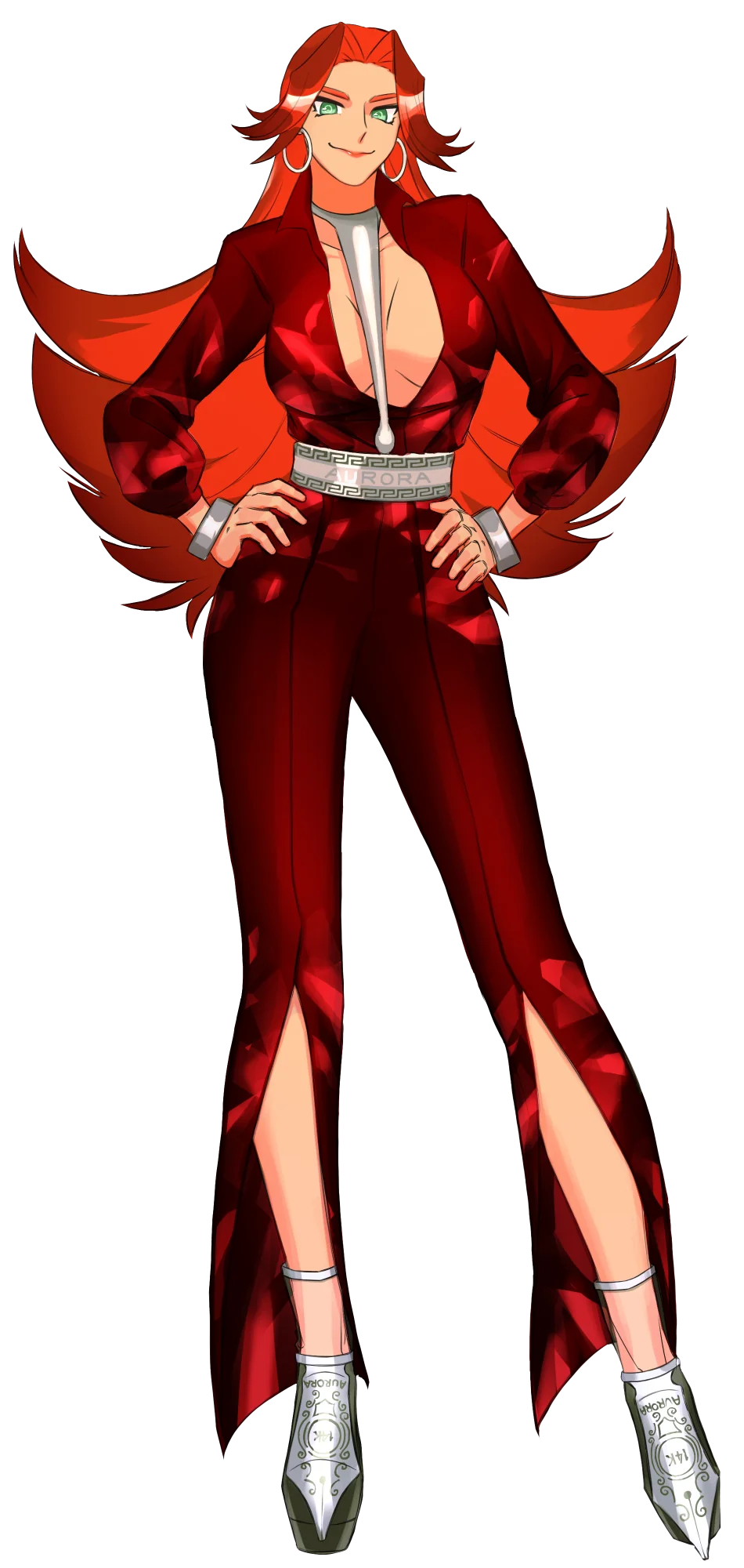 情熱的な赤レジンのインパクトをそのままに、華やかで力強い女性をイメージしてデザインしました。大きく開いた胸元・膝まで切れ込んだスリットと、メーカーのイメージよりやや軽快すぎるかとも思ってしまったのですが、本体の堅牢性についての小話が面白かったのでそのままにしました。アクセサリーでラフさと高貴さのバランスを取っています。