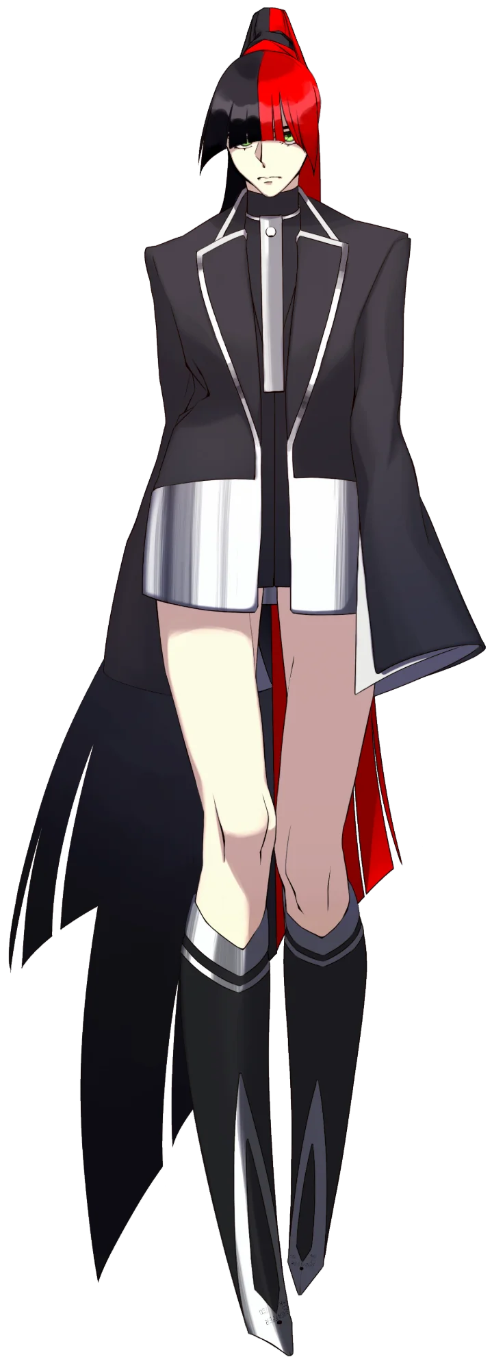 特徴的なインレイニブの形状をそのままブーツにしました。後ろにヒールが生えている変形ブーツです。本体そのものが特徴的で格好良いデザインのため、服はスーツを土台にショーで見るようなやや派手な形にしています。髪型も服に合わせて派手な形にし、ロゴに由来したカラーリングにしています。歴史あるメーカーですが、この擬人化に関しては革新性を推しています。